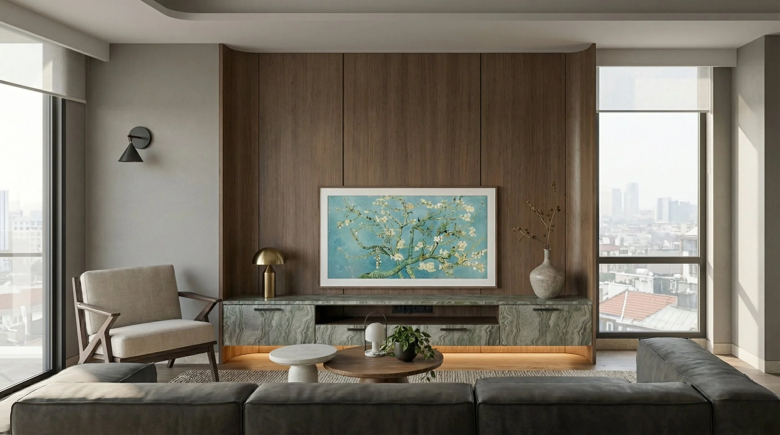 Tucked within a quaint neighbourhood, this apartment is envisioned as a quiet retreat — a modern tropical escape that’s minimal yet warm, and richly layered. Designed for a family who finds joy in travel, the home becomes a place of return and restoration, where calm takes precedence over excess. Walnut timber runs seamlessly throughout, grounding the space in depth and warmth, while carefully selected veneer patterns introduce subtle texture and visual interest. This home provides pause, recovery, and a gentle sense of luxury woven into everyday living.